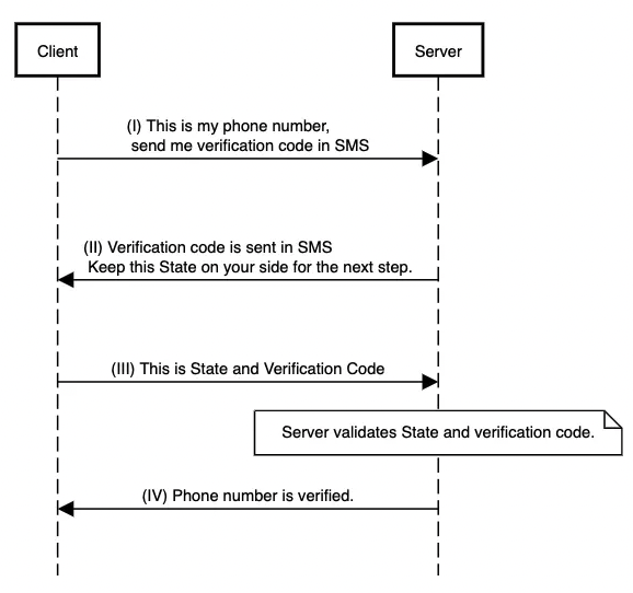 In web applications, sometimes it is needed to exchange multiple messages between server and client to complete a user journey. For example, this is a popular flow in user phone number verification:
